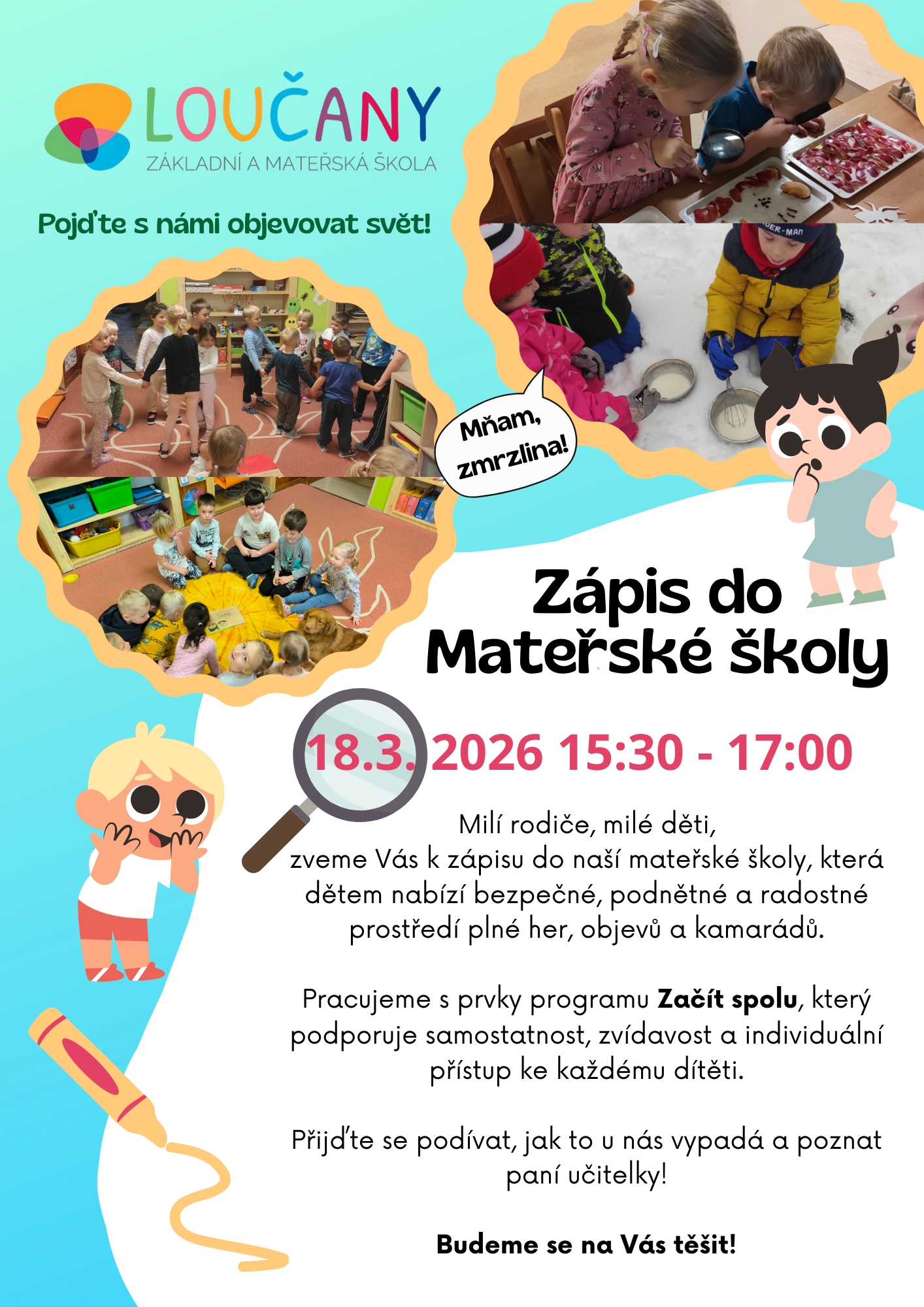 zveme vás na třídní schůzky, které se konají 10.2. 2026 od 17:00 v mateřské škole Loučany.