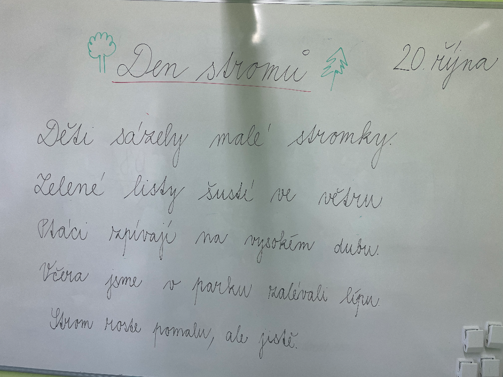 Dne 20. 10. jsme věnovali výuku ve 4. ročníku Dni stromů. Jak v českém jazyce, matematice, tak i angličtině. Zde se k nám připojili i páťáci a sestavili jsme sii Family tree a poslední hodinu v přírodovědě strávili venku se ,,stromovou bojovkou". Schválně, jaký strom jste podle stromového horoskpu vy? :)