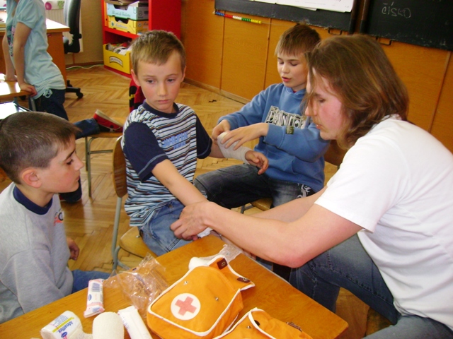 Dne 18.4. nás navštívili studenti medicíny, kteří pracují pod organizací IFMSA (www.ifmsa.cz) a naučili nás základy první pomoci.