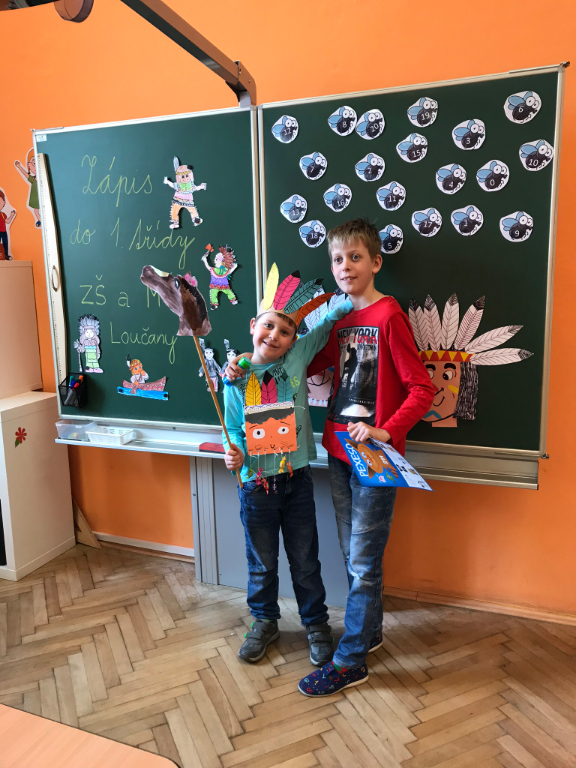 V úterý 9. dubna 2019 proběhl na naší škole indiánský zápis do 1. ročníku. Příchozí indiáni se se všemi záludnými úkoly statečně poprali a na závěr i odjeli na vlastním koni.