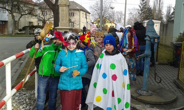 Naše děti začaly masopustní veselí projektovým vyučováním a pokračovaly masopustním průvodem vesnicí v krásných maskách.