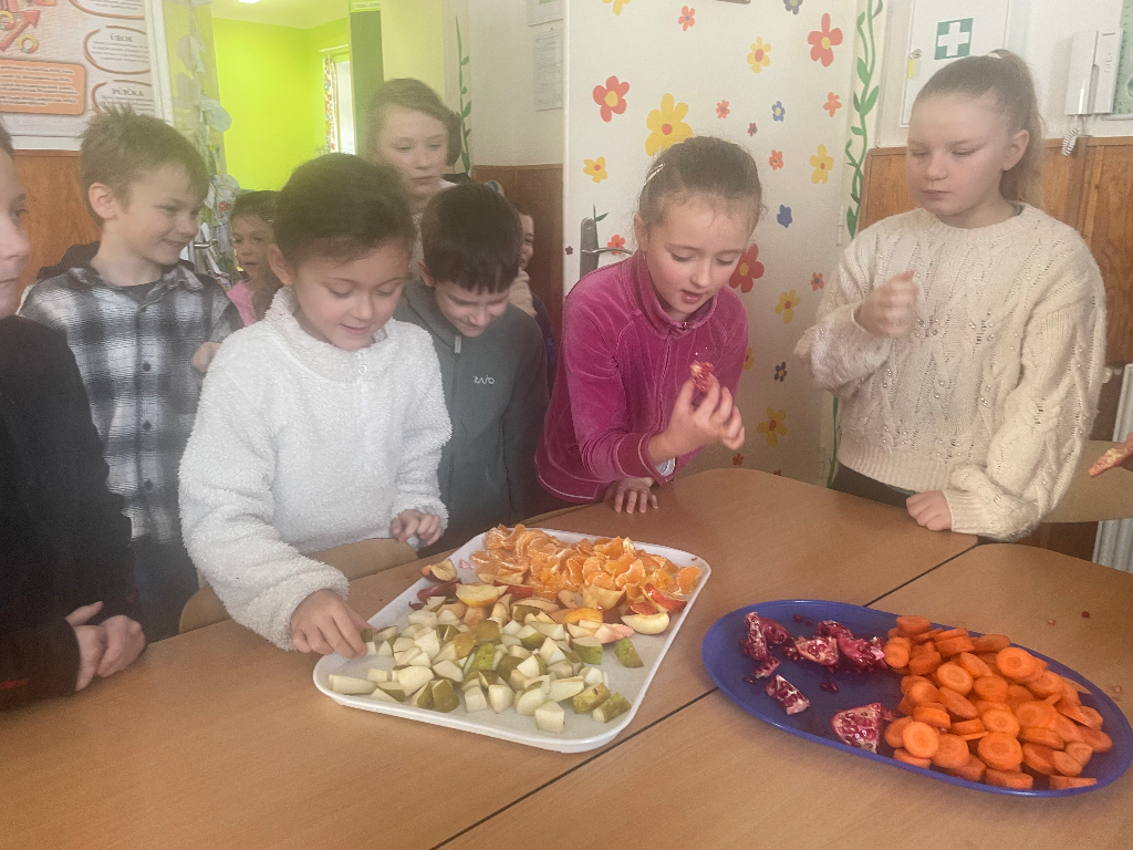 Naši žáci si znovu s chutí pochutnali na ovoci a zelenině z projektu Ovoce a zelenina do škol Pro některé děti to byla dokonce premiéra, poprvé ochutnaly granátové jablko. Zbyly jen prázdné tácy.