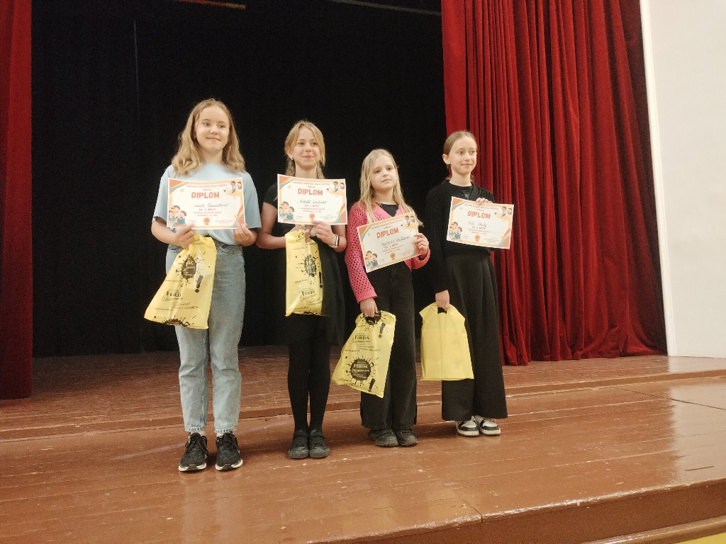 22. dubna jsme se vydali na ,,regionální" kolo recitační soutěže do Těšetic. Zúčastnili se výherci našeho školního kola. V každé kategorii jsme se umístili, což pro nás velmi znamená. Děkujeme žákům i paním učitelkám, že školu takto reprezentují.