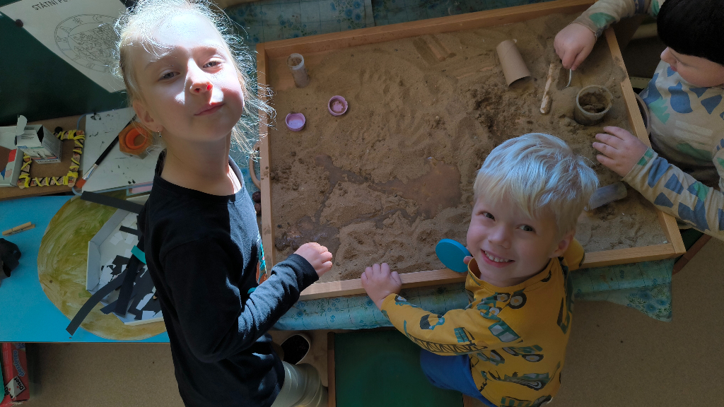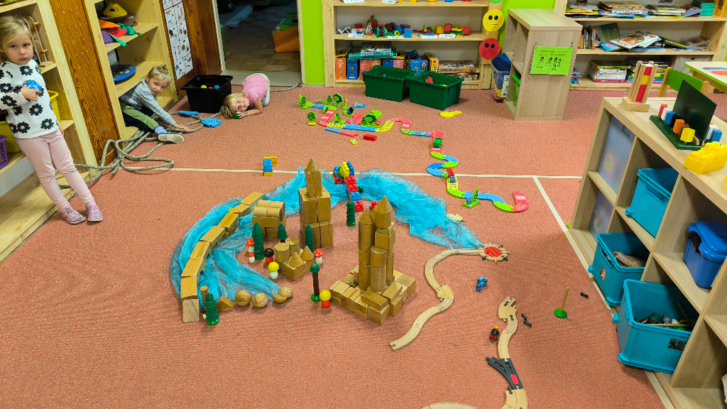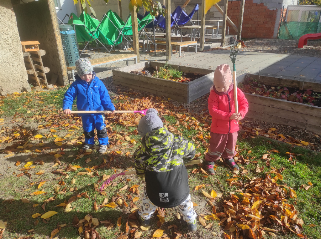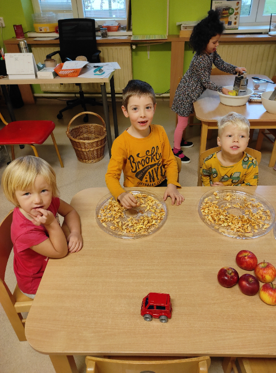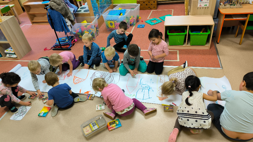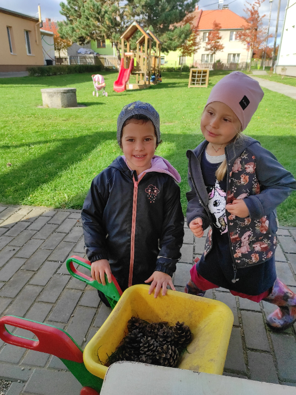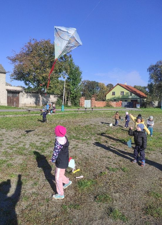 Říjen u nás ve školce proběhl v příjemné podzimní náladě. Společně jsme objevovali barvy podzimu, sušili jablíčka, hrabali listí, užívali si větrné dny venku a přitom pouštěli draky. Povídali jsme si o tom, kde bydlíme a co máme kolem sebe. Děti se více dozvěděly o naší zemi a skrze nápadité aktivity si přiblížily, jak vypadá hlavní město.