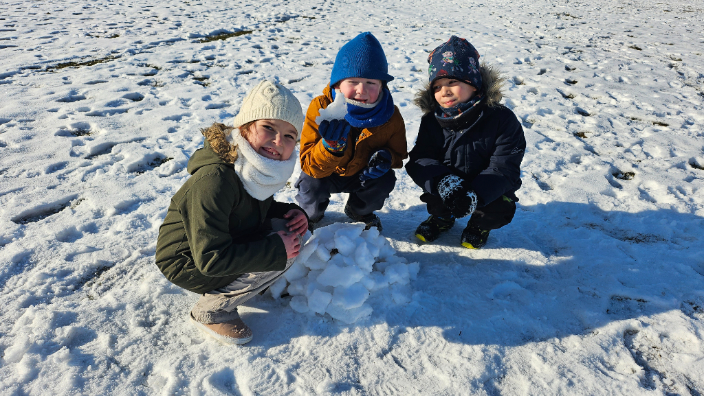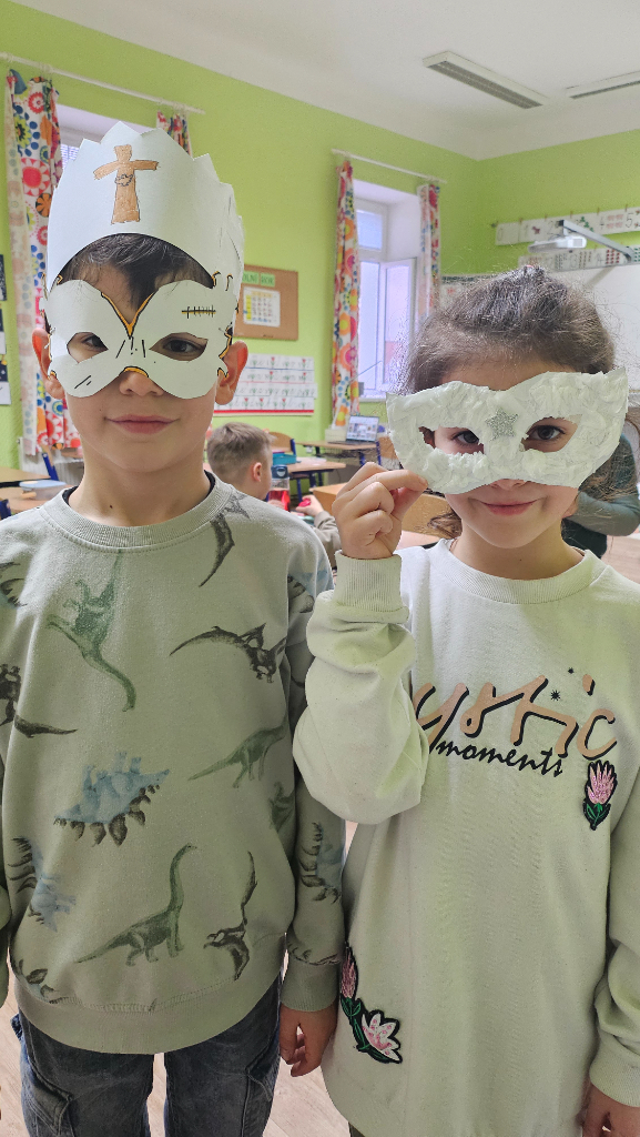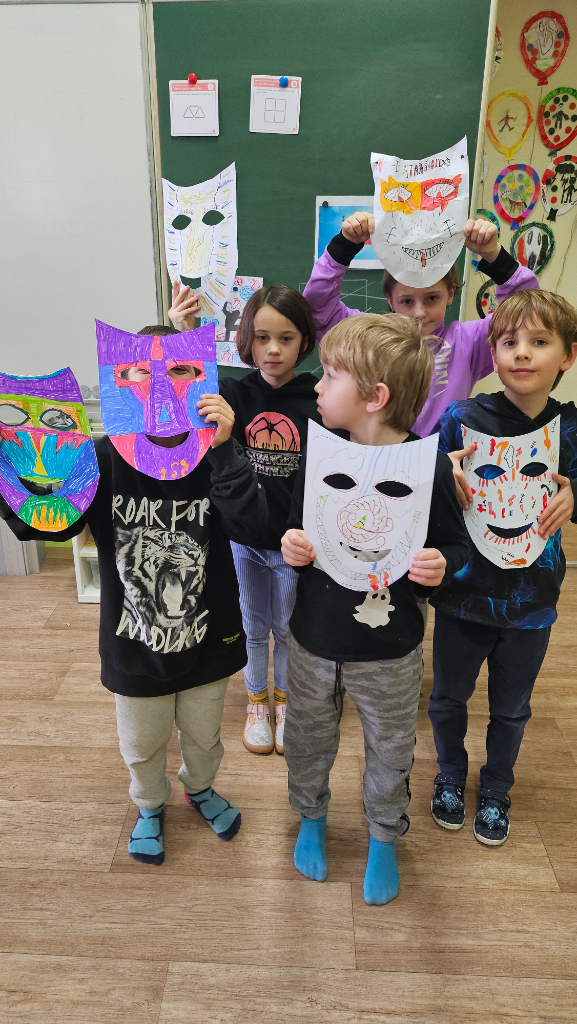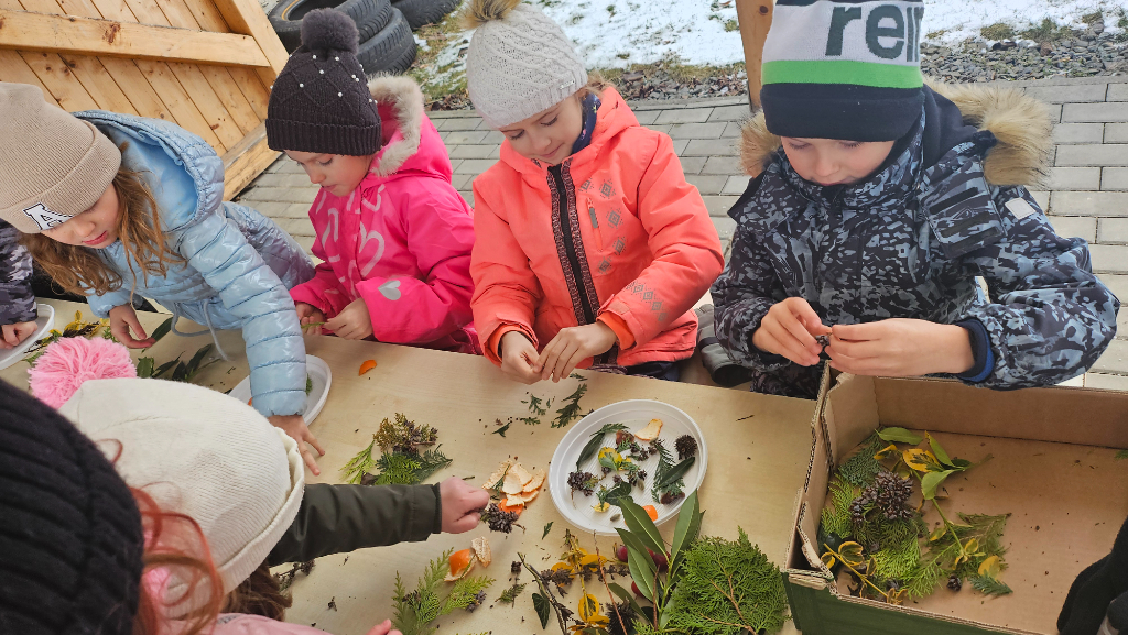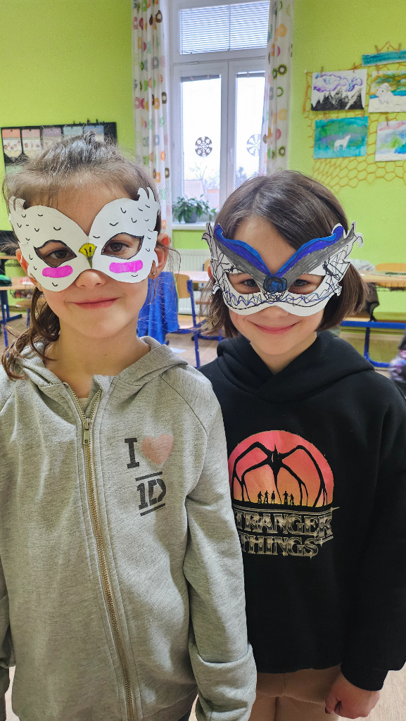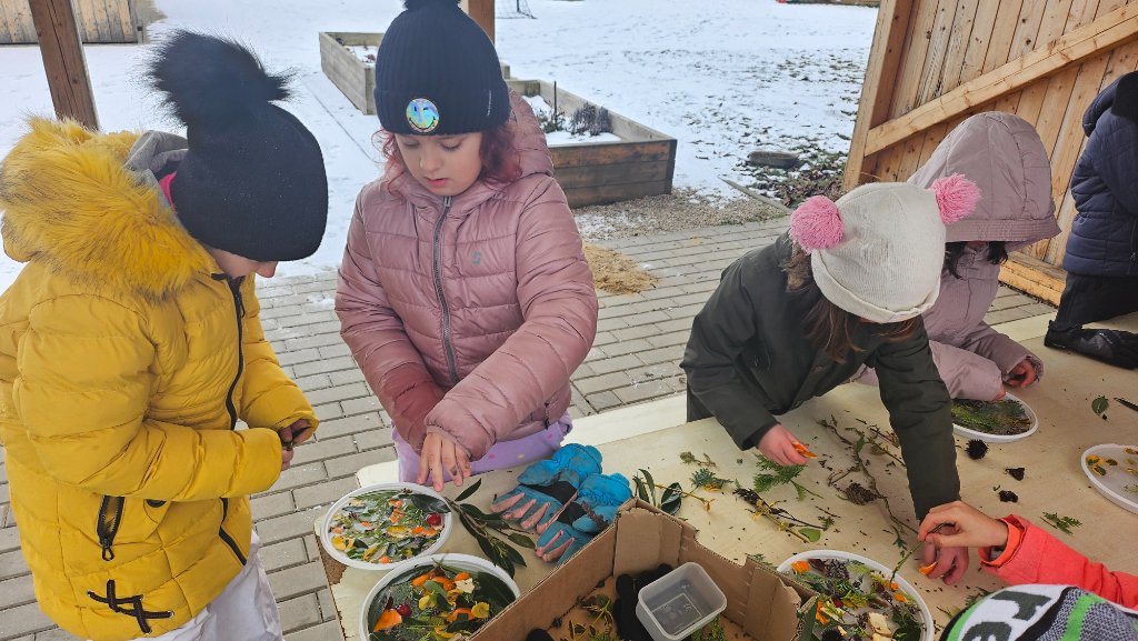 V lednu a únoru jsme trávili hodně času venku, protože byla bohatá sněhová nadílka. Dále jsme vyráběli masky na karneval, hráli hry a plnili logické úkoly. Také jsme vyráběli ledové ozdoby z přírodnin, které nám i letos dlouho vydržely.
