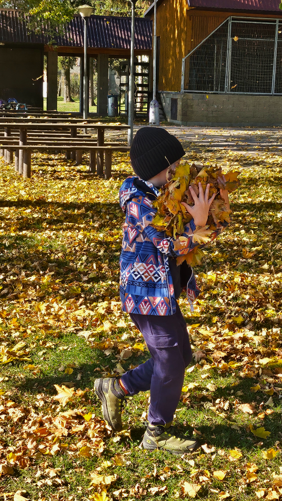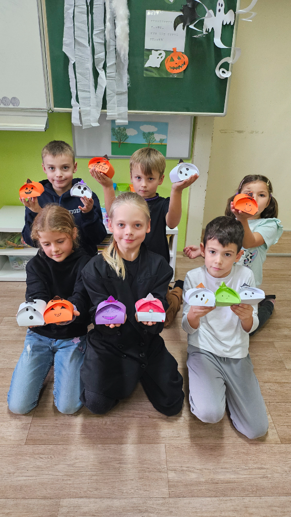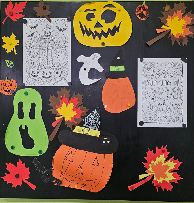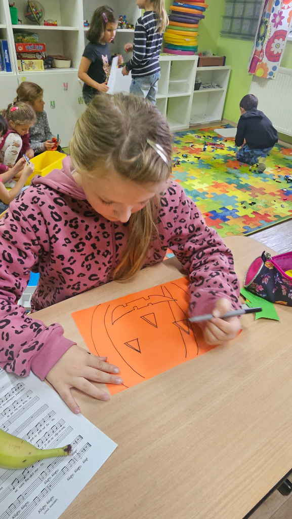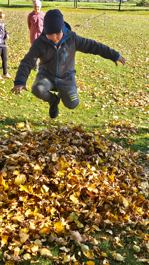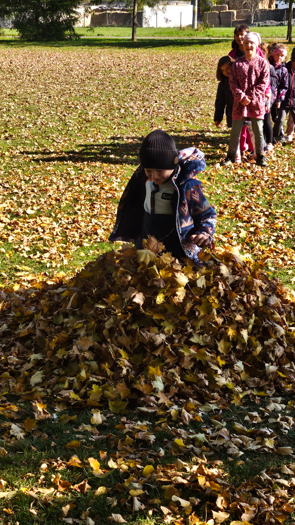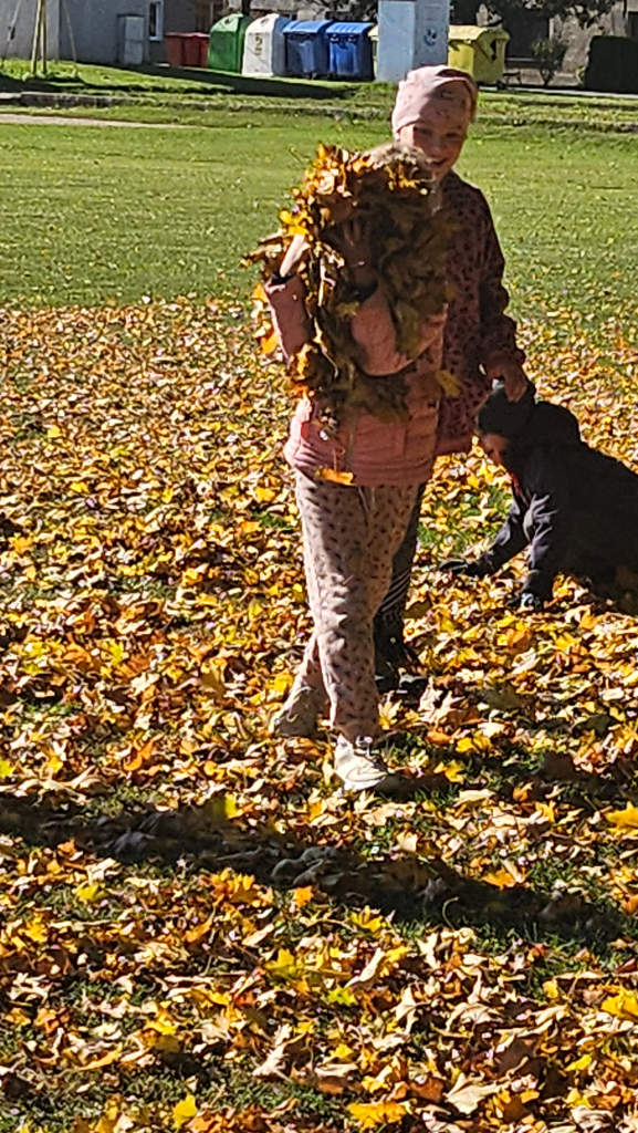 V říjnu jsme se vyřádili hlavně venku, hráli jsme různé hry, skákali do listí. Ve třídě jsme plnili různé úkoly, vyráběli krabičky, dýně, listy,....
