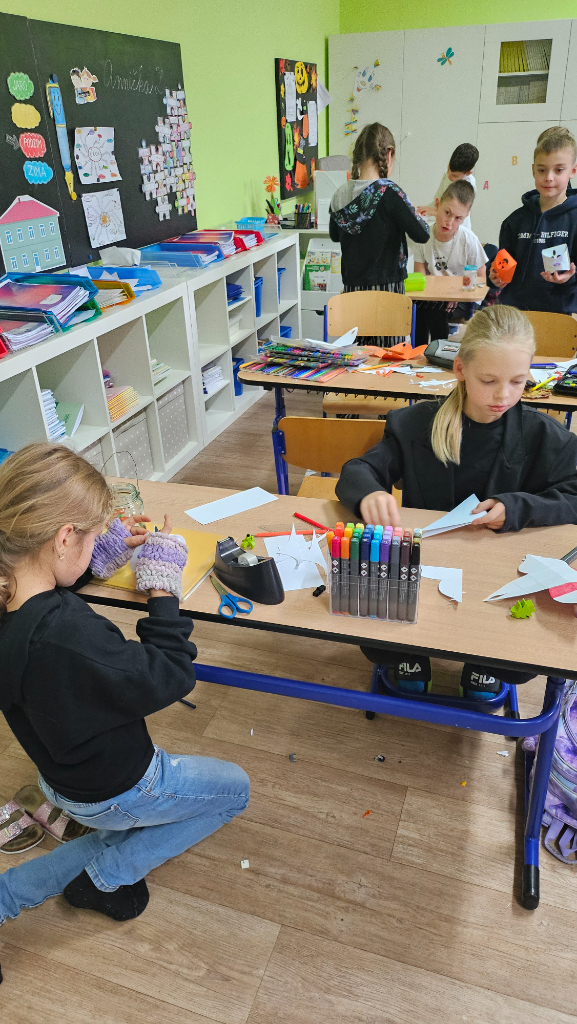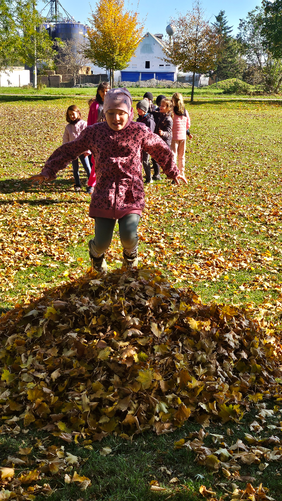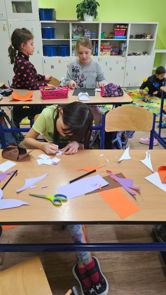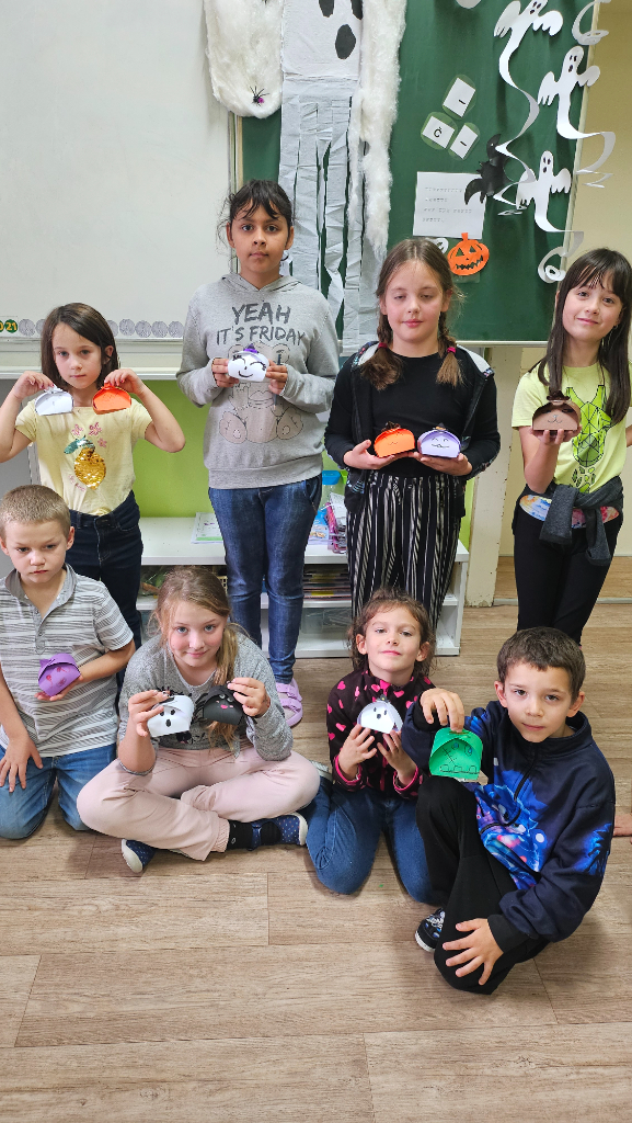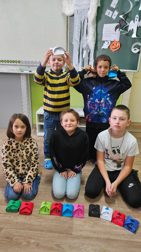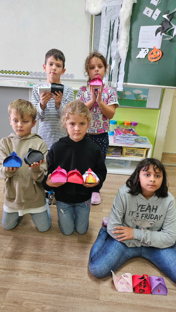 V říjnu jsme se vyřádili hlavně venku, hráli jsme různé hry, skákali do listí. Ve třídě jsme plnili různé úkoly, vyráběli krabičky, dýně, listy,....