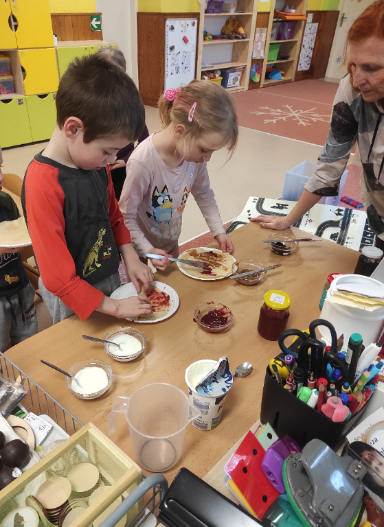 V únoru jsme si ve školce užívali sněhové radovánky, pochutnali jsme si na palačinkách během Palačinkového dne a ke konci měsíce jsme zaznamenali i první záblesky slunečného počasí.