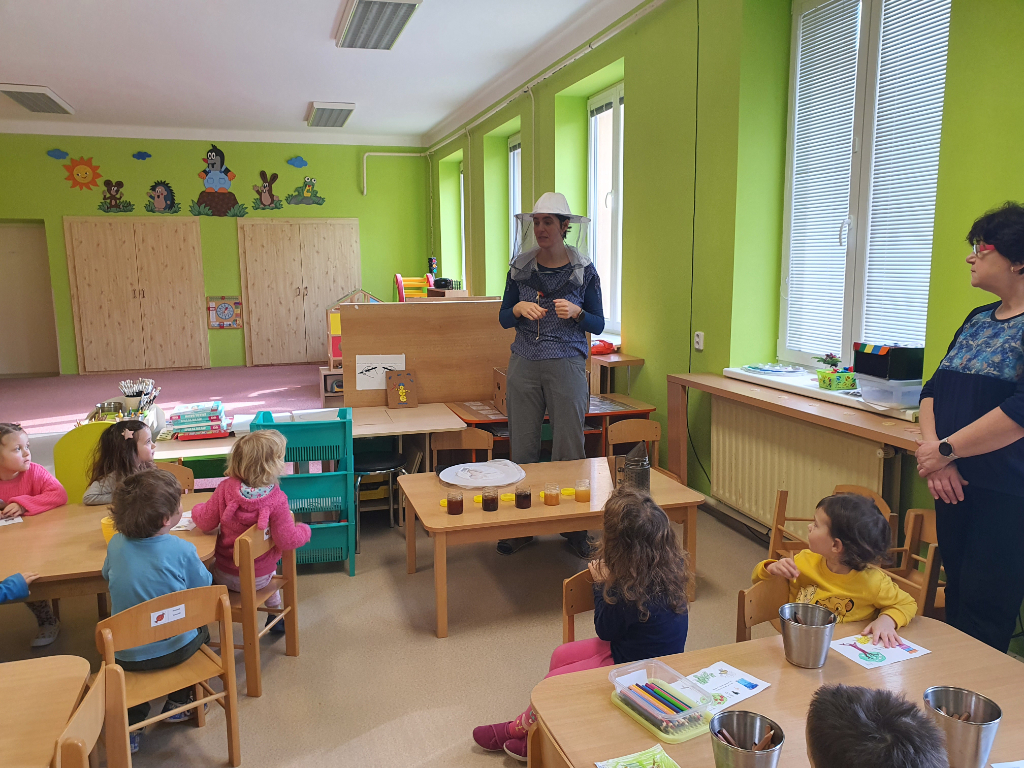 Děti si zahrály na včelky a povídali jsme si nejen o životě včel v úle a mimo něj, ale tak trochu i o včelaření a včelích produktech. Na závěr programu si děti vyrobily svíčku ze včelího vosku a vybarvily obrázek s říkankou.