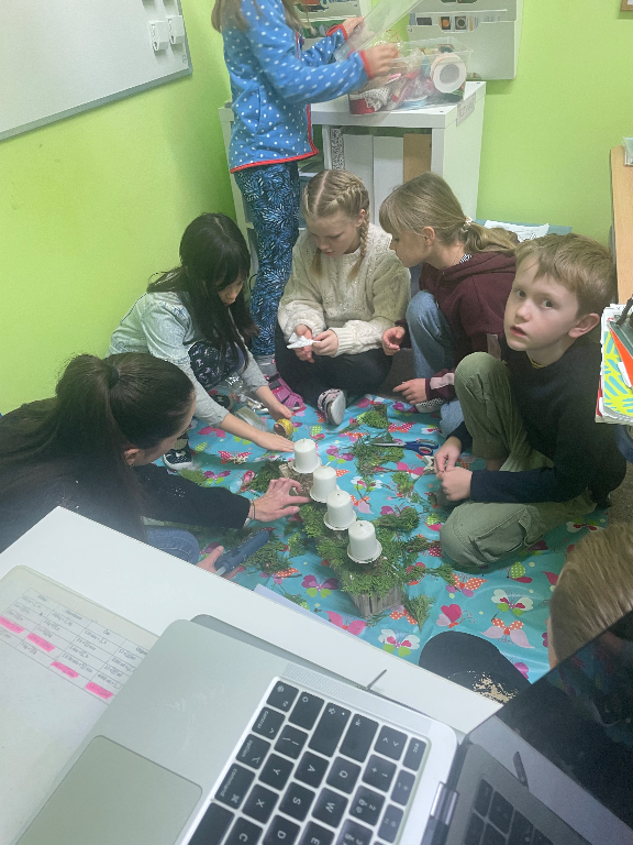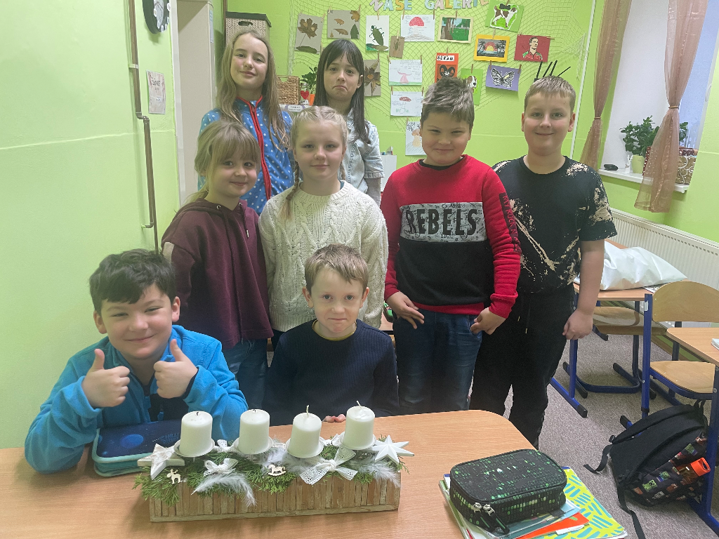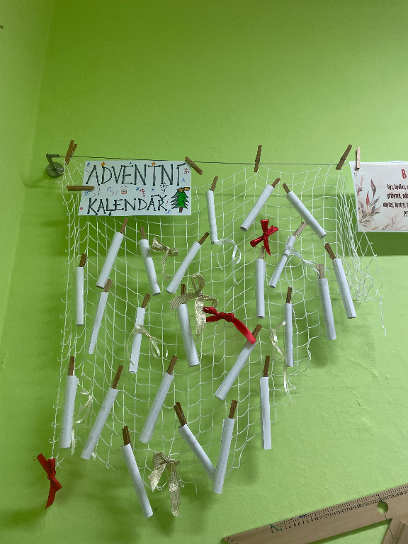 Po první adventní neděli jsme si vyrobili věnec a otevřeli políčko v kalendáři.